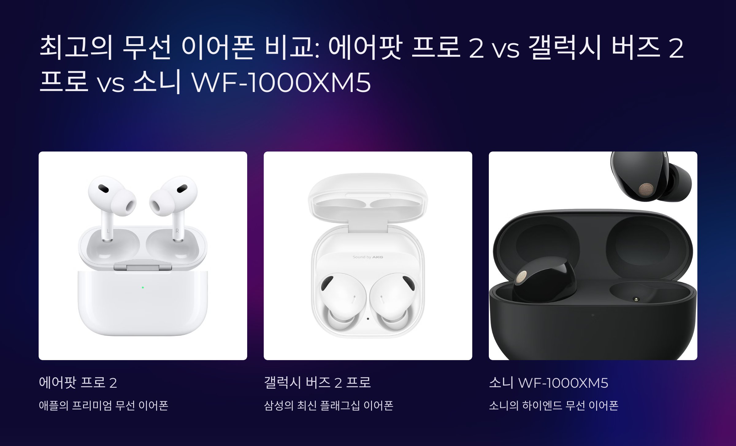 무선이어폰 비교, 에어팟 프로 2세대, WF-1000XM5 리뷰, 갤럭시 버즈 2 프로, 노이즈캔슬링 이어폰, 2025 무선 이어폰 추천